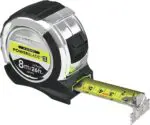 Durable pocket tape with steel dual printed blade, vertical markings on reverse and patented hi-vis printing. Featuring a true zero end-hook, top blade lock and deburred blade edges. Ergonomic ABS case with moulded rubber grip.