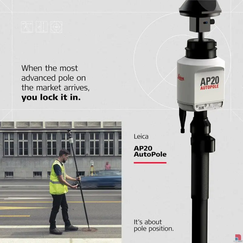 The Leica AP20 is a game-changer, being the world’s first tilt pole for total stations.