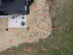 1. Survey the area’s perimeter. This clearly establishes your working area. The red line defines the perimeter/working area. You need a minimum of 4 points but can add perimeter points anywhere the linear plane changes, dips or hills. There is no maximum number of perimeter points.